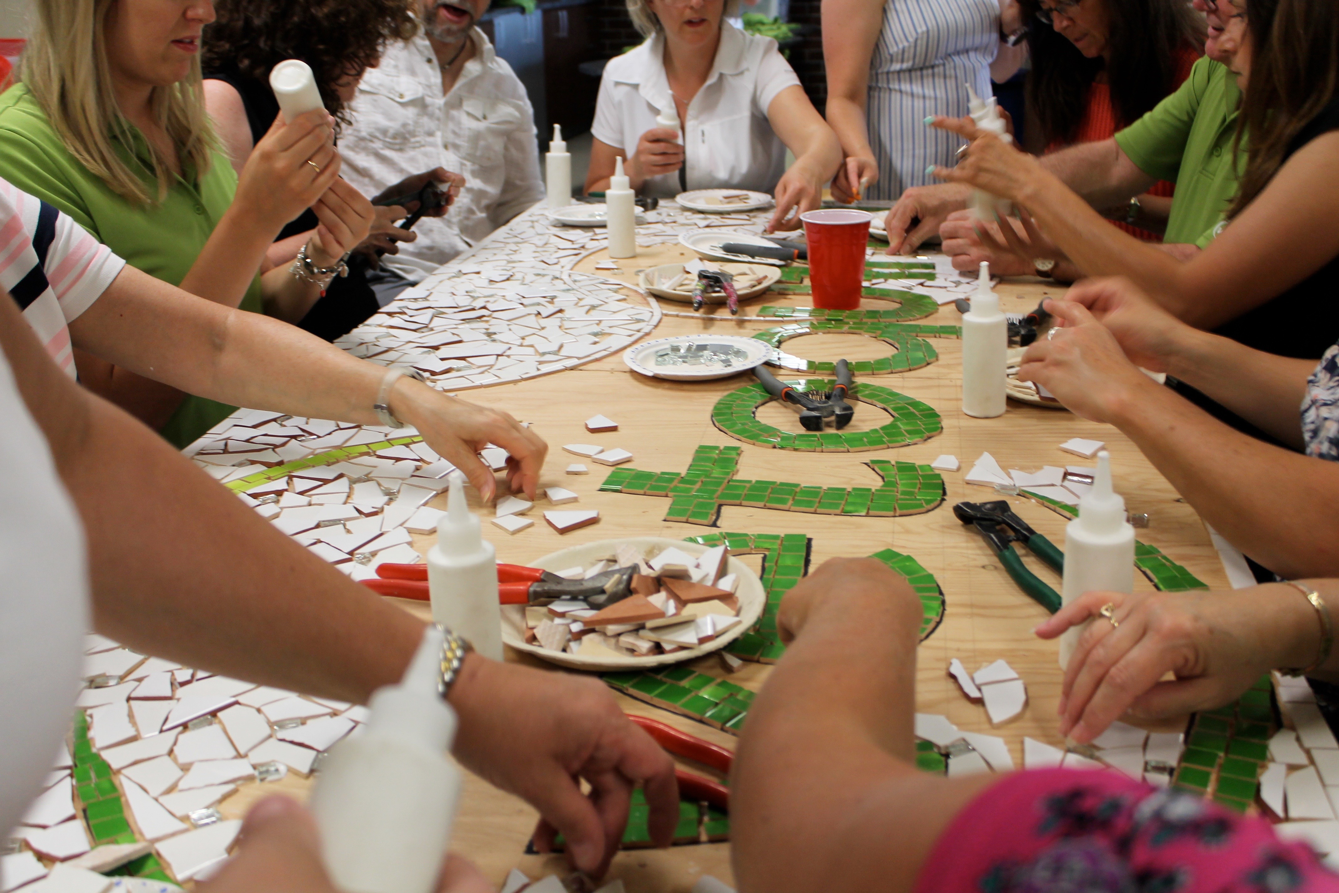 Les ateliers de mosaïque collective sont offerts aux écoles, aux entreprises ou aux groupes familiaux. Unissez vos efforts autour de ce projet rassembleur et réalisez une mosaïque murale de grande dimension.